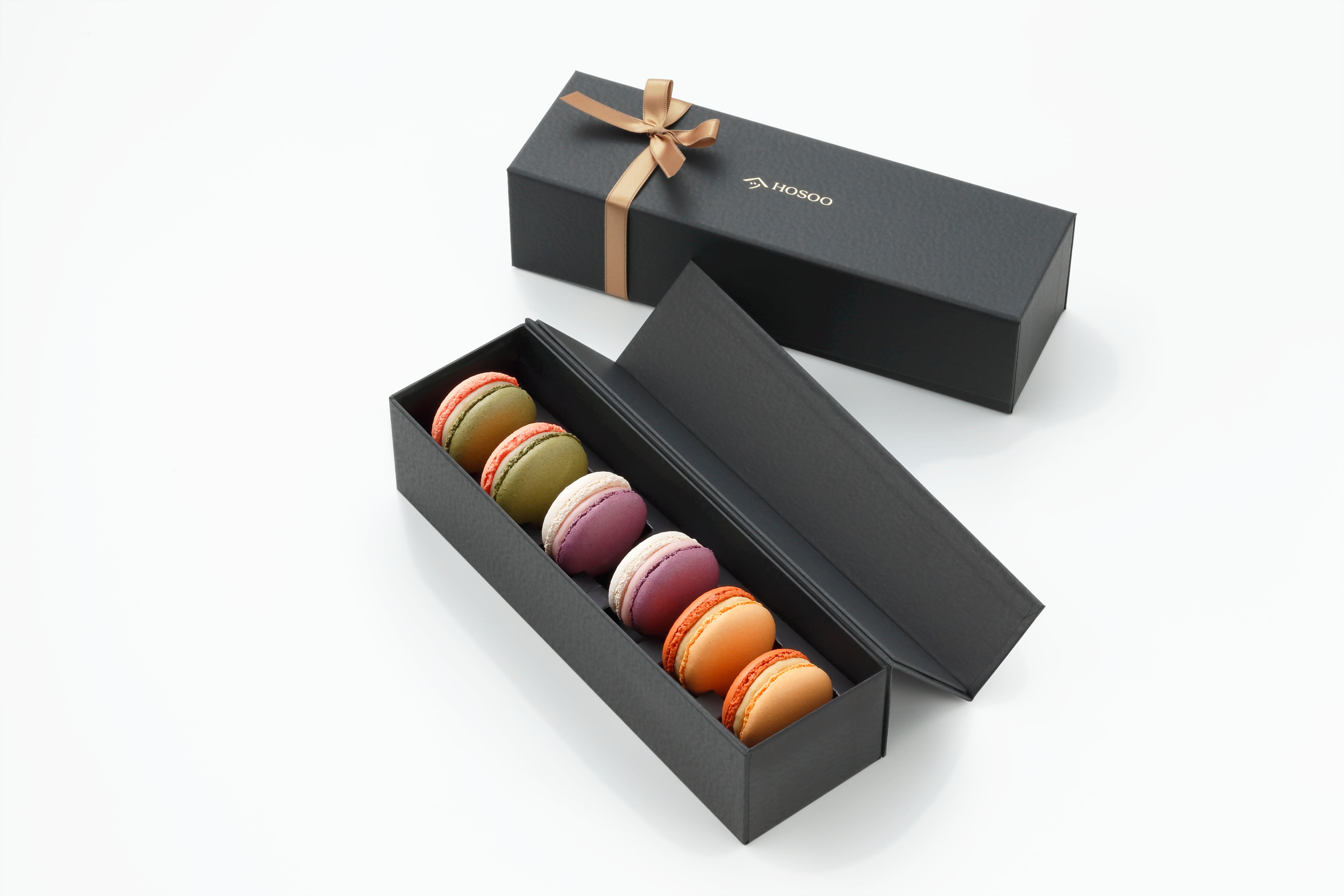 『HOSOO LOUNGE』のオリジナルマカロンは、平安時代のきものの配色美である「かさね色目」をテーマにした美しい色合いが特徴です。