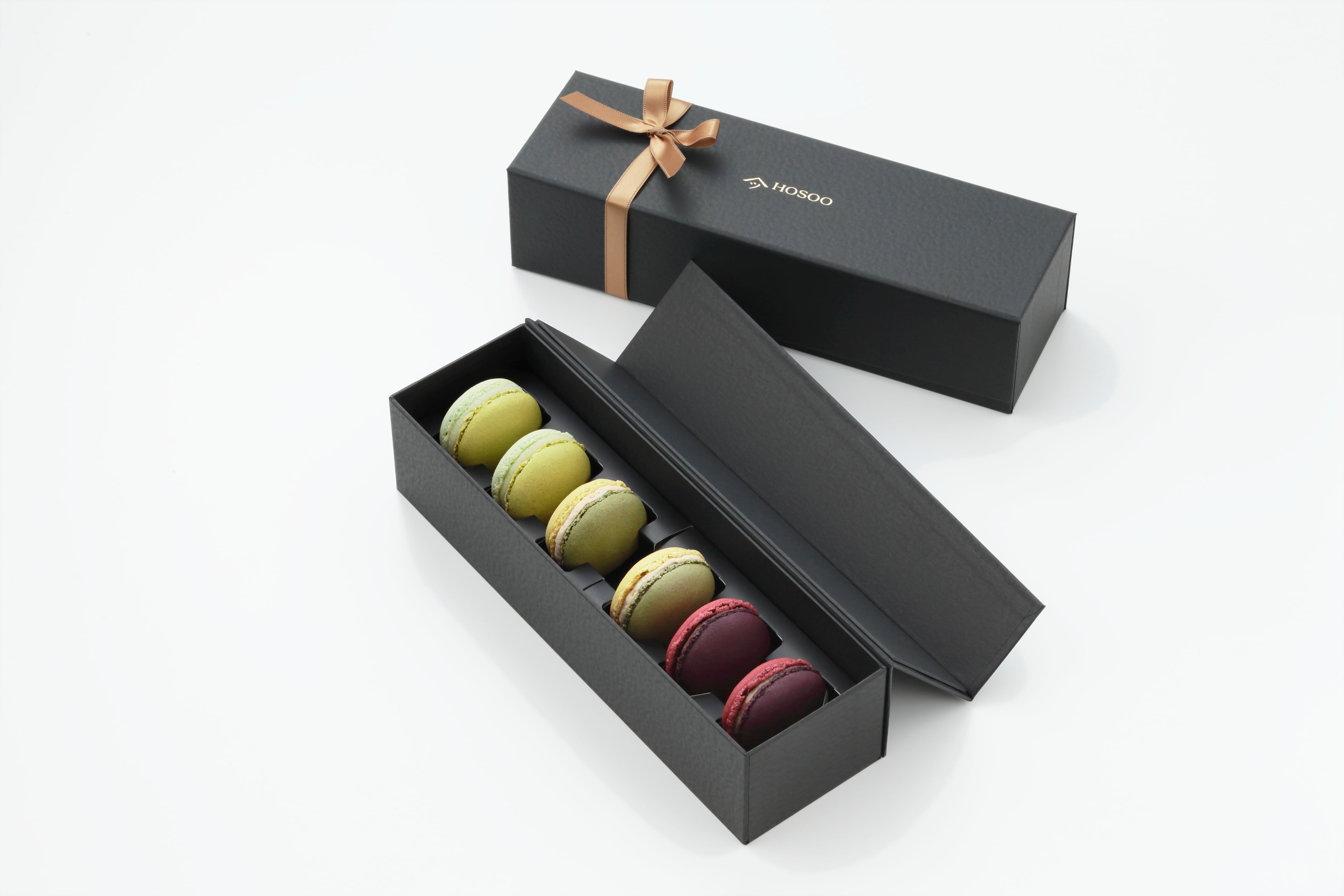 『HOSOO LOUNGE』のオリジナルマカロンは、平安時代のきものの配色美である「かさね色目」をテーマにした美しい色合いが特徴です。