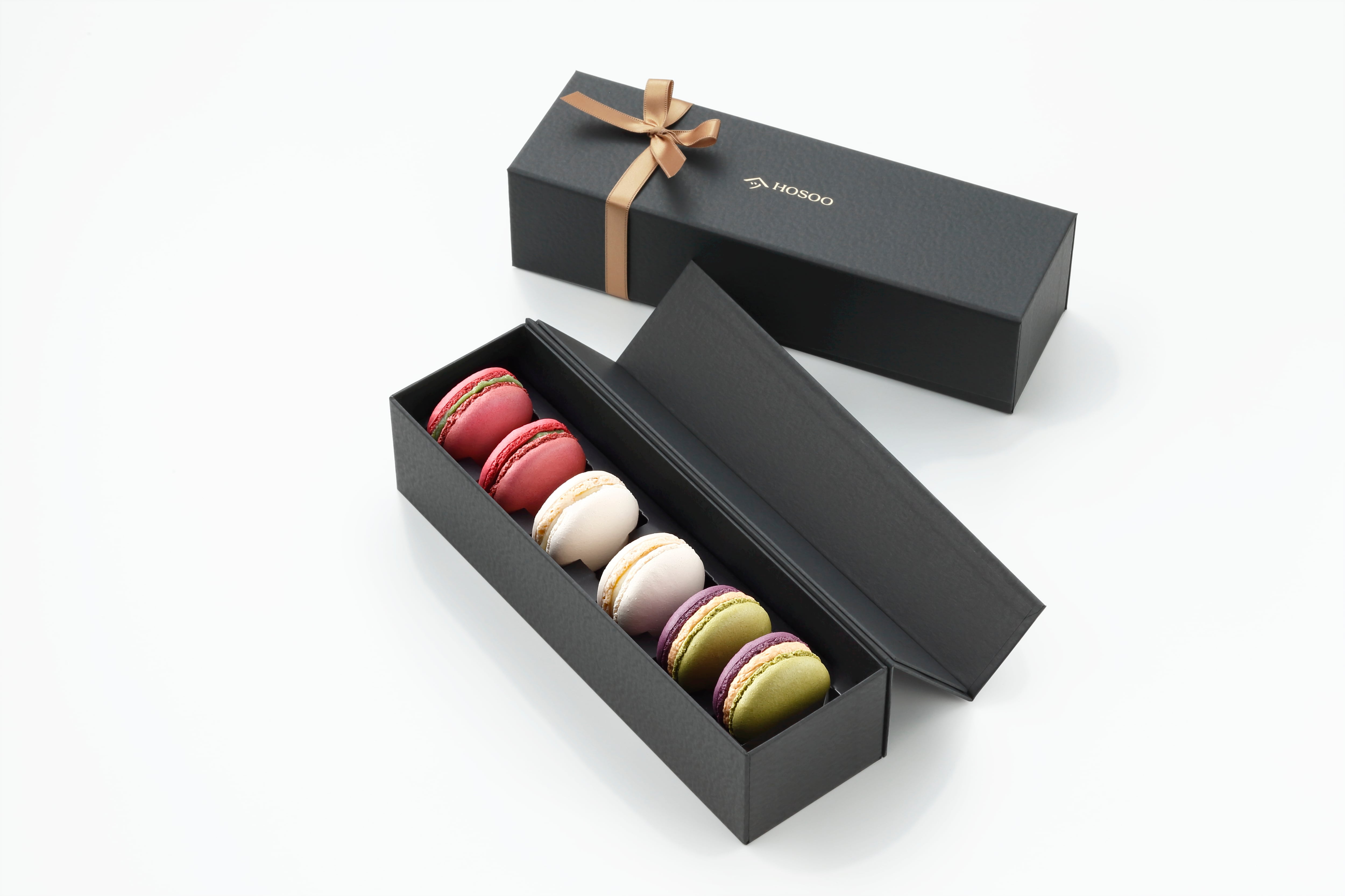 『HOSOO LOUNGE』のオリジナルマカロンは、平安時代のきものの配色美である「かさね色目」をテーマにした美しい色合いが特徴です。
